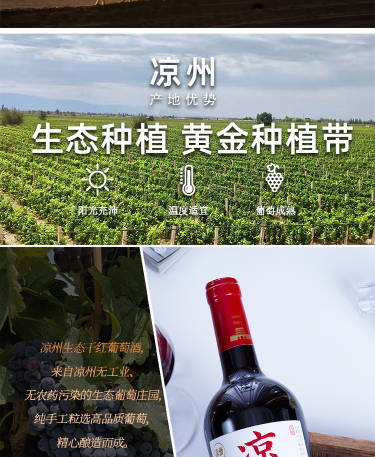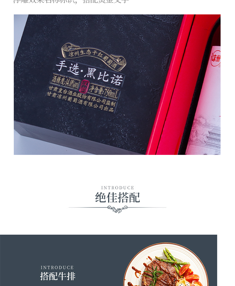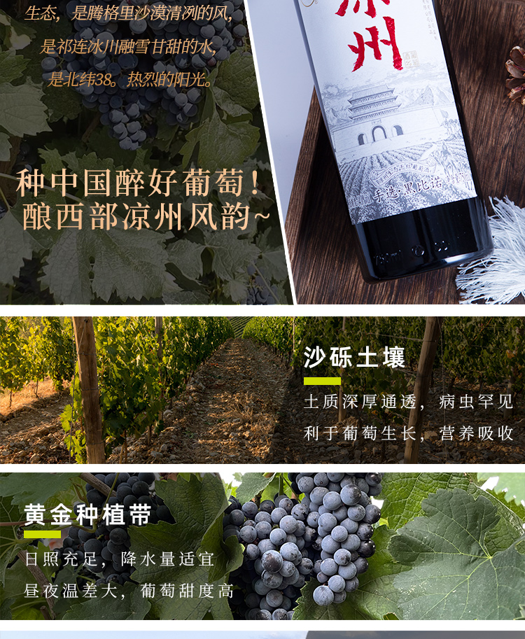 酒品名稱:涼州生態(tài)干紅葡萄酒(漢韻)手選·黑比諾