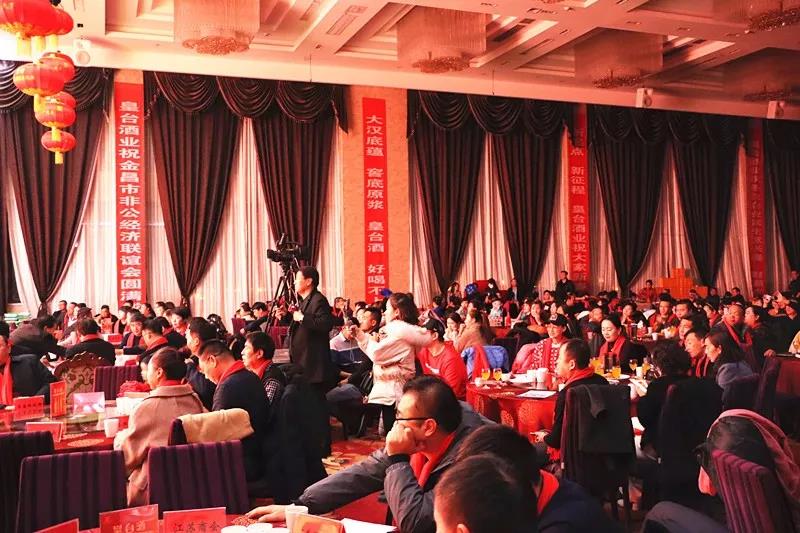 盛會現(xiàn)場暖意融融:“皇臺酒業(yè)祝金昌市非公經(jīng)濟(jì)聯(lián)誼會圓滿成功”“大漢底蘊(yùn),窖底原漿,皇臺酒好喝不上頭”“新起點(diǎn),新征程,皇臺酒業(yè)祝大家新春快樂”的巨型條幅,為會場營造了喜慶氣氛。