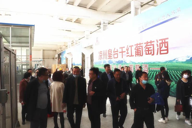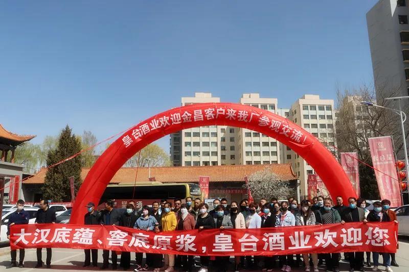 4月8日,皇臺(tái)酒業(yè)拱門(mén)高聳,道旗招展。來(lái)自金昌的客戶(hù)代表以及經(jīng)銷(xiāo)商,蒞臨皇臺(tái)酒業(yè)進(jìn)行參觀考察。
