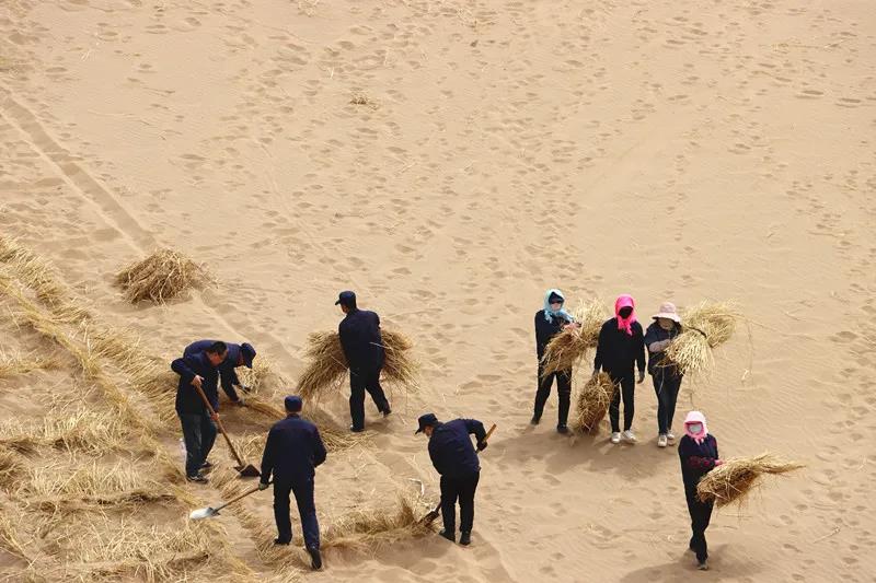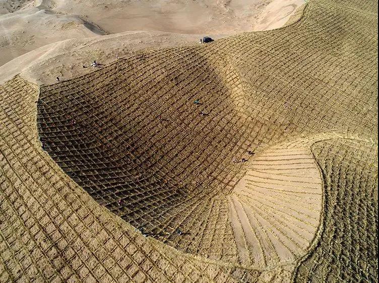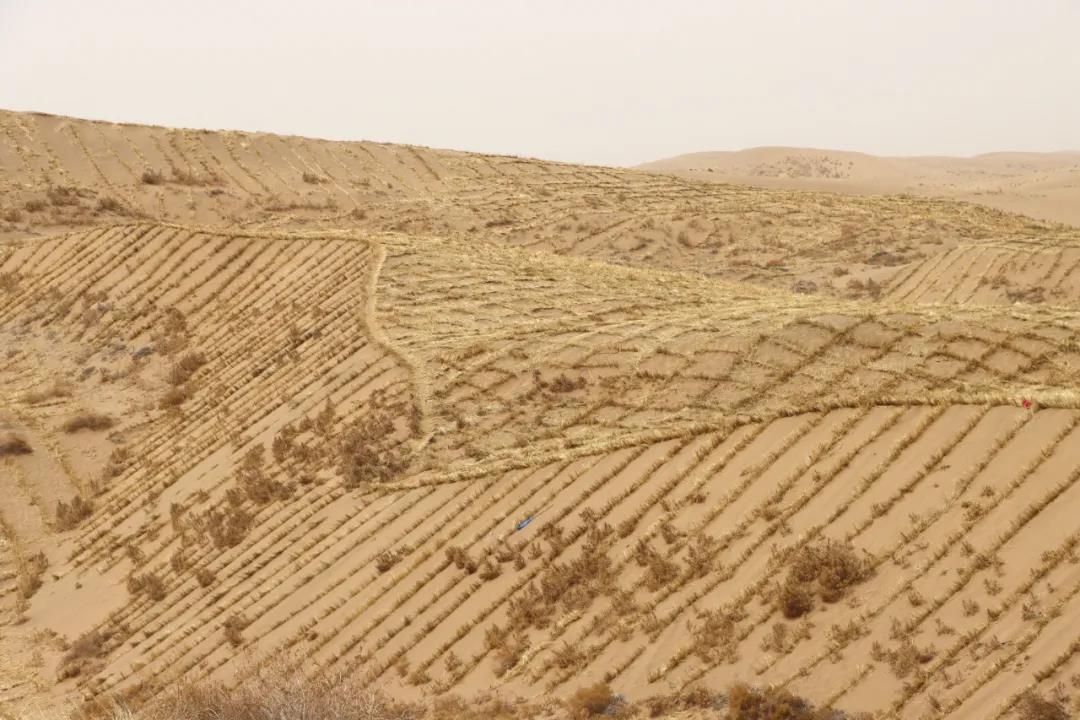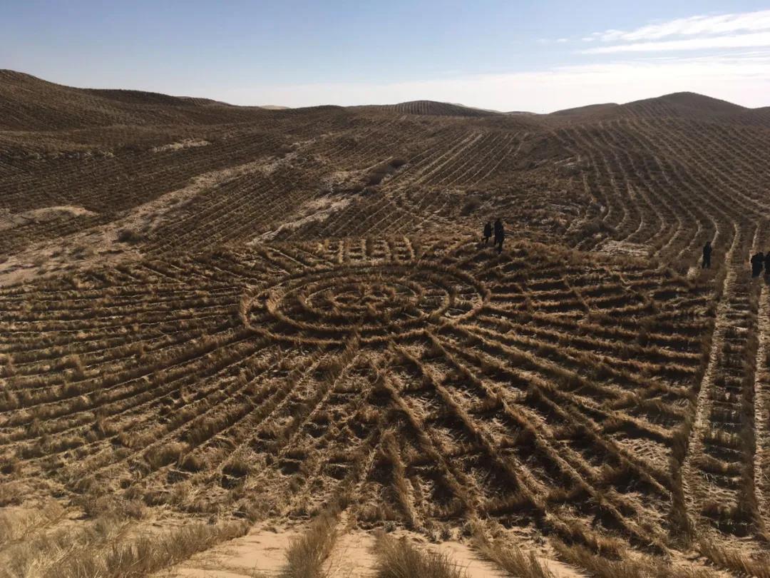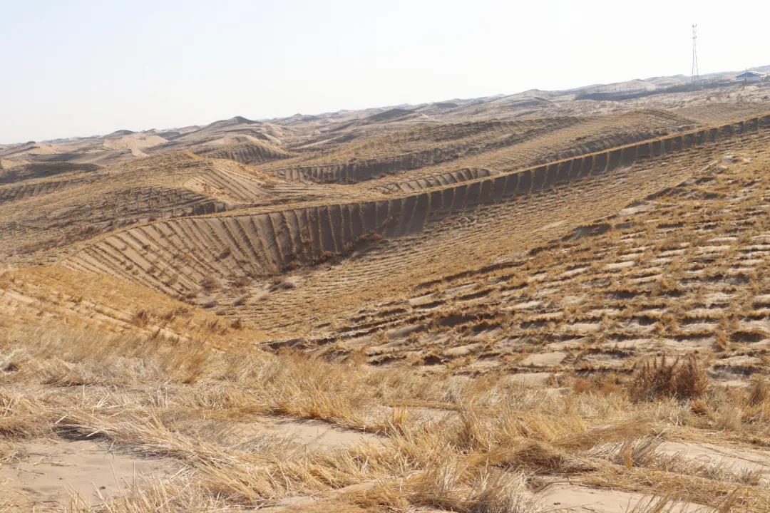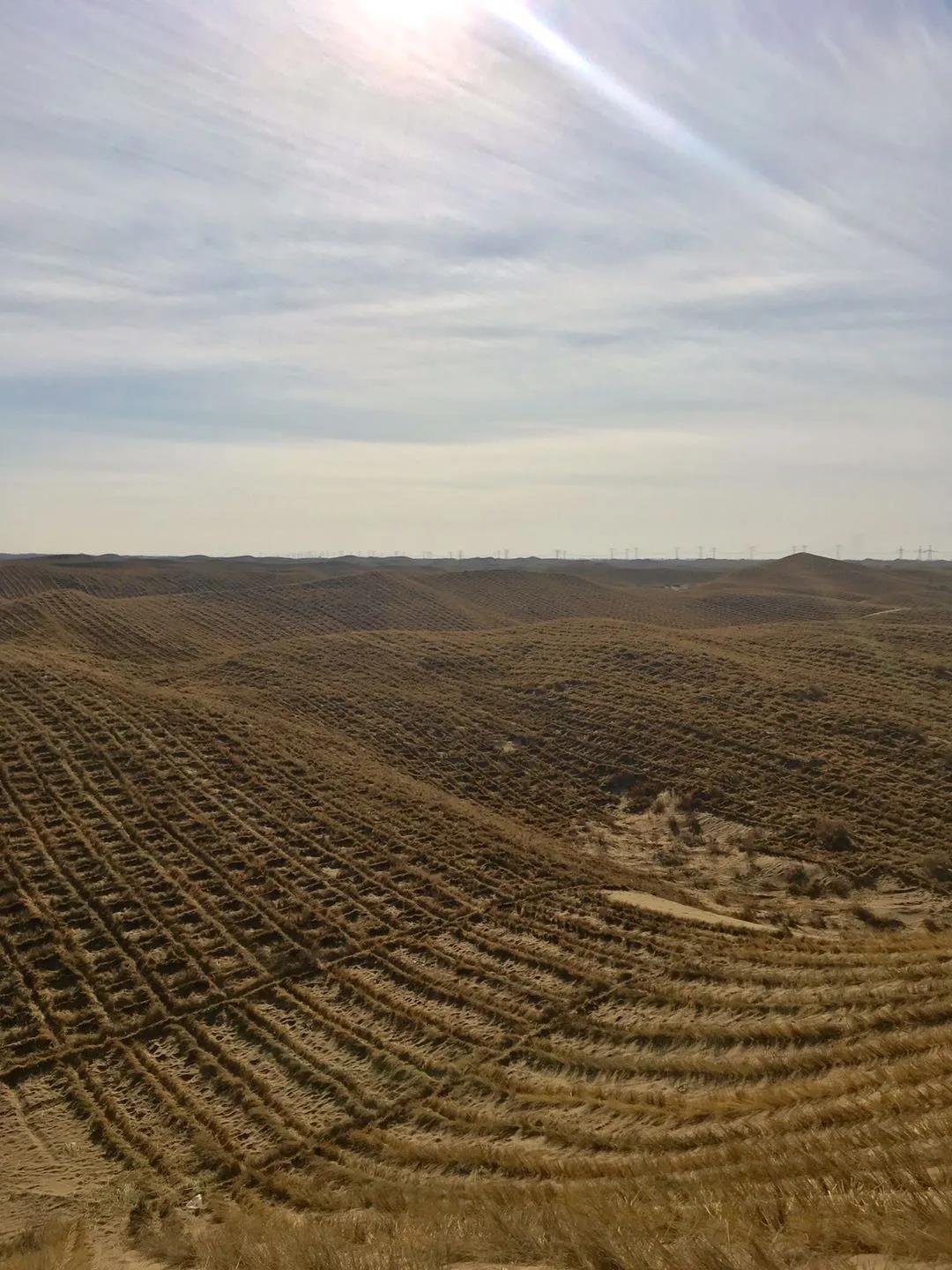 經(jīng)過了一整天的辛苦勞作,可謂戰(zhàn)果滿滿, 整齊劃一的“草方格”, 從大家的腳底下延伸至遠方,像一道道迷人的風景。無數(shù)的“草方格”,形成了成片沙障,將在這廣袤的沙海中,與風沙牢牢抗衡。