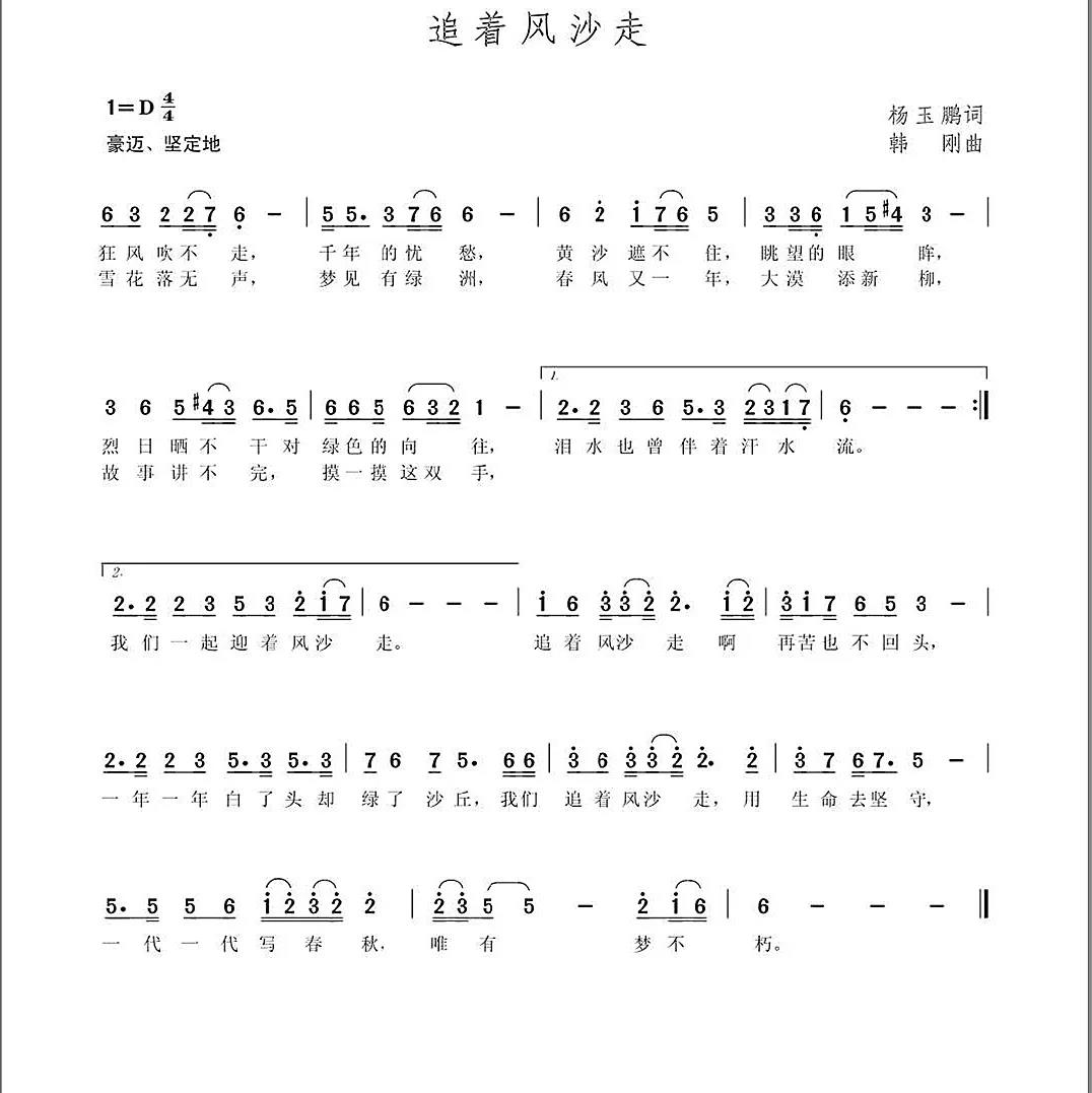 (一)《追著風沙走》:作詞,楊玉鵬,青年詞作家,甘肅武威人。代表作品:《甘肅老家》(印青曲)、《土豆花兒開》(韓剛曲)等。