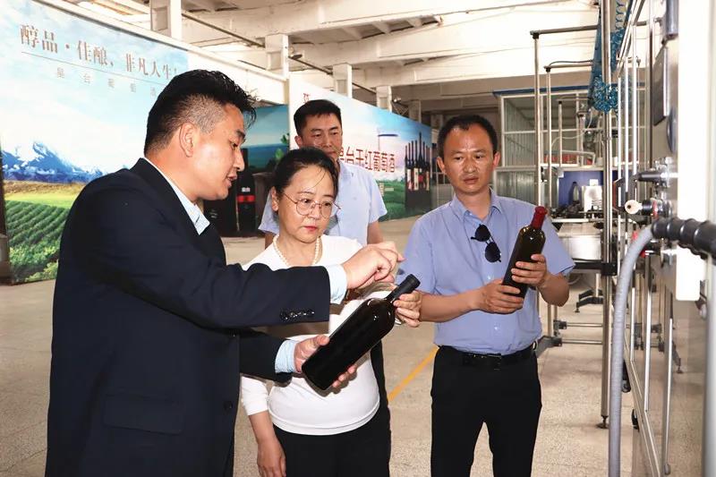 銷(xiāo)售公司總經(jīng)理姜紅如、副總經(jīng)理臧佰卓、葡萄酒車(chē)間副總經(jīng)理潘濤、生產(chǎn)部部長(zhǎng)李生祿一起陪同參觀調(diào)研。