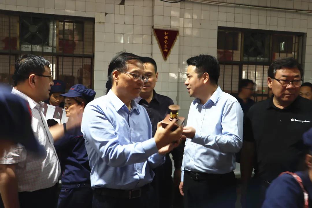 在調(diào)研組一行參觀的過程中,公司董事長趙海峰向調(diào)研組匯報了目前公司的全面經(jīng)營情況。趙董事長說:去年至今年,是皇臺酒業(yè)攻堅克難的一年,公司上下同心協(xié)力,眾志成城,在踏實(shí)實(shí)干中創(chuàng)新求變,在精益求精中力挽狂瀾,實(shí)現(xiàn)了公司扭虧為贏的向好局面,使皇臺重新步入穩(wěn)步發(fā)展的健康軌道。在產(chǎn)品酒質(zhì)方面,公司不但聘請了國家白酒評委、教授級高級工程師陳兵為公司的生產(chǎn)總工程師,而且還定期請中國釀酒大師、原水井坊總工程師賴登燡,釀酒大師、原五糧液股份有限公司副總經(jīng)理劉友金等專家,定期來公司進(jìn)行釀酒工藝指導(dǎo)。2019年,皇臺生產(chǎn)的窖底原漿12、18,在全球59個國家和地區(qū)1750款產(chǎn)品中脫穎而出,分別榮獲2019比利時布魯塞爾國際烈性酒大賽金獎、銀獎。窖底原漿系列以及鼎系列產(chǎn)品,受到廣大消費(fèi)者的一致好評。