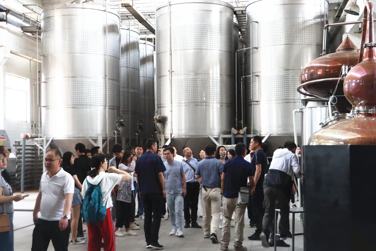 釀造車間,酒香馥郁,觀摩團(tuán)一行深入生產(chǎn)車間一線,品嘗了醇香濃郁的原漿酒。