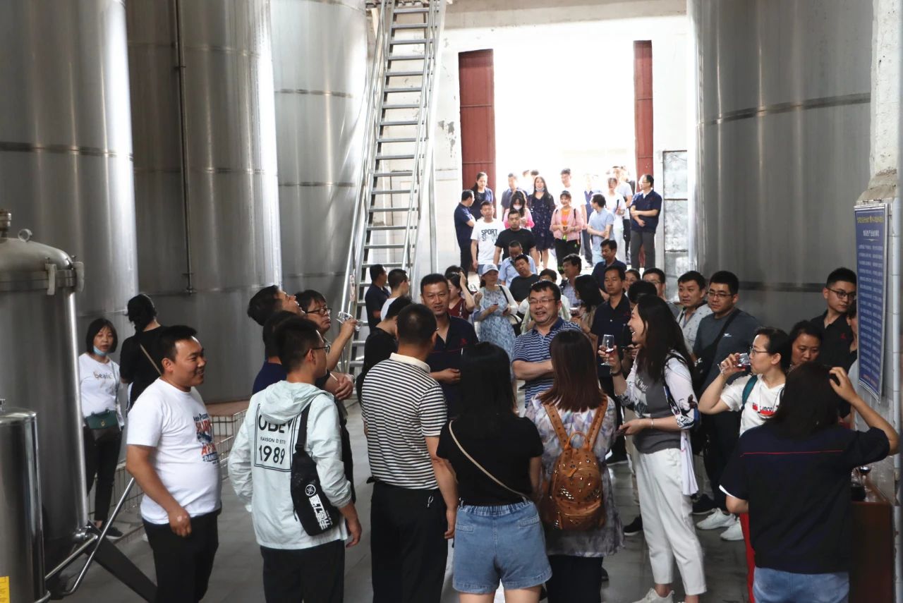 參觀團(tuán)一行在葡萄酒灌裝車間,察看了先進(jìn)的葡萄酒灌裝生產(chǎn)線;在葡萄酒貯藏車間,大家參觀了立式罐和臥式罐,品味了葡萄原酒。