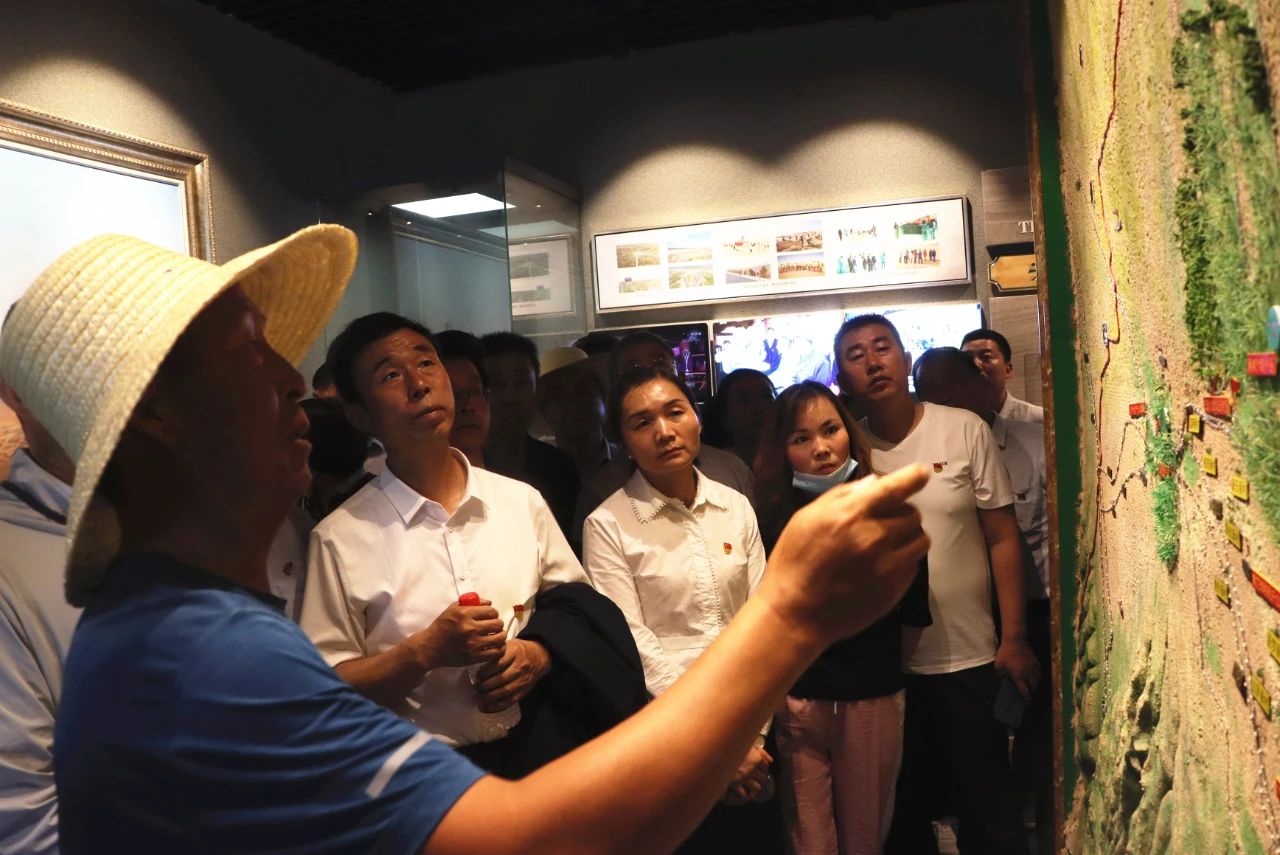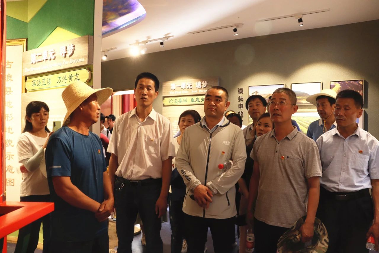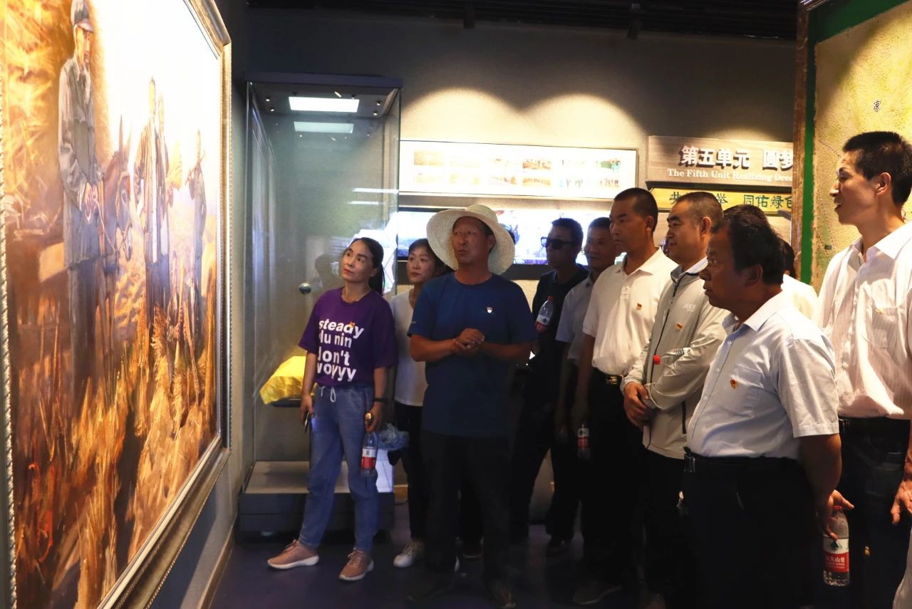 在紀(jì)念館講解員的講解下,大家神情肅穆,認(rèn)真聆聽。一張張圖片,一幅幅生動的畫面,向大家形象展示了八步沙六老漢心系沙海、以苦為樂,自強(qiáng)不息、改造河山、戰(zhàn)天斗地的創(chuàng)業(yè)精神,黨員們無不被深深震撼。