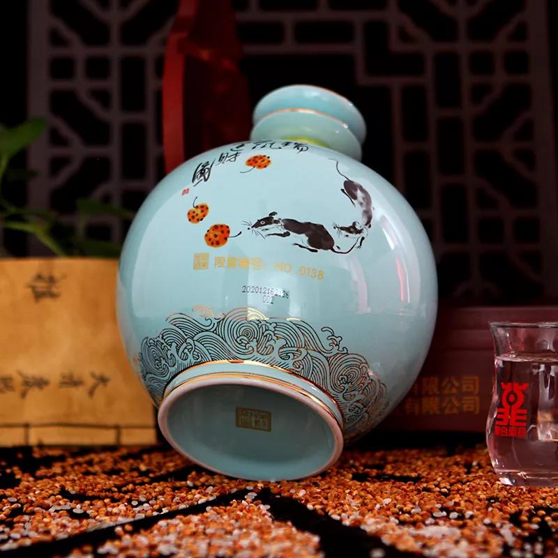 皇臺·鼠年生肖酒,瓶身為帝王壇瓶型?;宜{(lán)色系,寧靜高遠(yuǎn)。細(xì)膩圓潤的瓶身上,燙金字體,襯得瓶身愈發(fā)高端典雅;兩只小老鼠,拙樸可愛,姿態(tài)不一,意趣盎然?;逝_·鼠年生肖酒,巧秒地將生肖文化和酒文化完美地融合在了一起,在高端閑適之間,讓人感受到一絲輕松、愉悅和寧靜的氣息。真可謂壺中日月,酒中春秋!