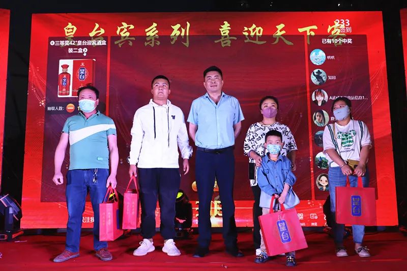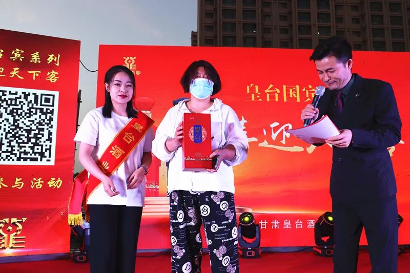 路演抽獎(jiǎng)活動(dòng)分為三輪:第一輪三等獎(jiǎng)抽取10名觀眾,獎(jiǎng)品為皇臺(tái)迎賓酒兩盒;第二輪二等獎(jiǎng)抽取5名幸運(yùn)觀眾,獎(jiǎng)品為皇臺(tái)國(guó)賓酒兩盒;第三輪一等獎(jiǎng)抽取2名幸運(yùn)觀眾,獎(jiǎng)品窖底原漿12 兩盒?,F(xiàn)場(chǎng)觀眾只要用微信掃大屏上的二維碼,即可參與抽獎(jiǎng)活動(dòng)。