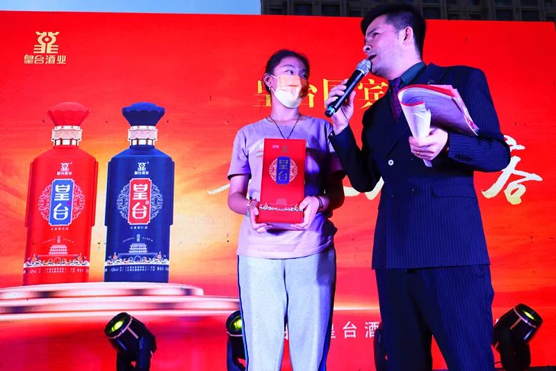 營(yíng)銷(xiāo)中心副總經(jīng)理葉玉璀,為集贊最多、人緣最好、積極性最高的幸運(yùn)觀眾送上皇臺(tái)國(guó)賓酒2盒。