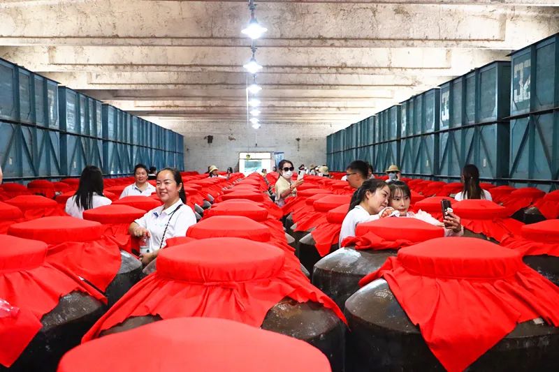 蔚然壯觀的半成品酒庫,已儼然成了人人都爭相參觀的“網(wǎng)紅打卡地”——大家無不為皇臺(tái)規(guī)模宏大的陶壇以及酒海子所吸引,發(fā)抖音、快手,朋友圈以及拍照留影。