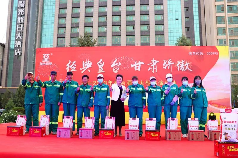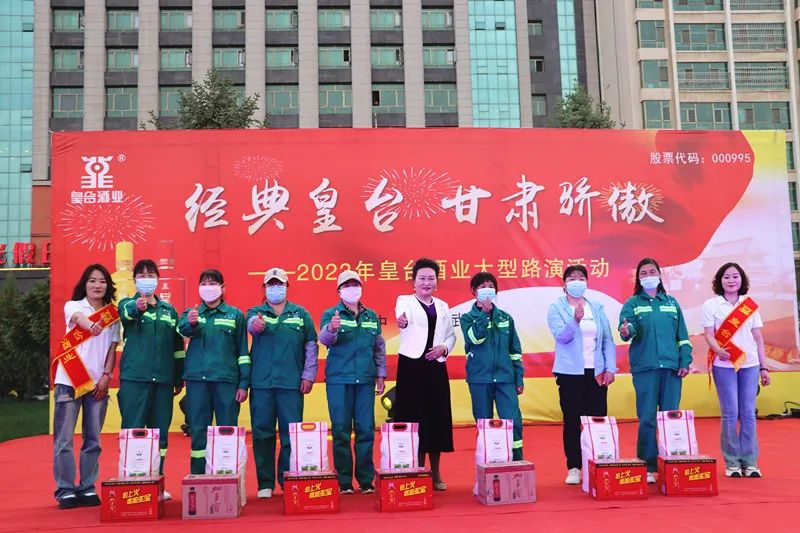 在路演活動現(xiàn)場,為感謝古浪縣廣大消費(fèi)者對皇臺酒業(yè)的厚愛和支持,皇臺酒業(yè)特?cái)y古浪亞細(xì)亞有限公司,向古浪縣綠化工作者獻(xiàn)上愛心物資,感謝她們?yōu)楣爬说某鞘薪ㄔO(shè)付出的辛苦勞動,古浪縣城因她們而更精彩,更美麗。