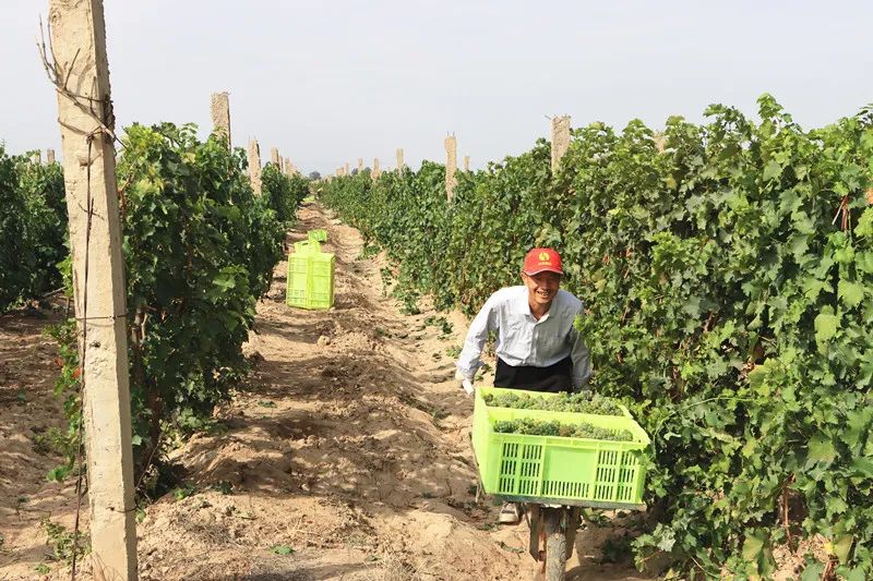 天時(shí)地利人和?;逝_(tái)酒業(yè)涼州葡萄莊園地處祁連山北麓,有著獨(dú)特的地理位置和區(qū)位優(yōu)勢(shì),充沛的日照,以及少雨蒸發(fā)量大的氣候特點(diǎn),再加葡萄種植人員的精心管理,使今年的葡萄迎來一個(gè)喜人的豐收年。