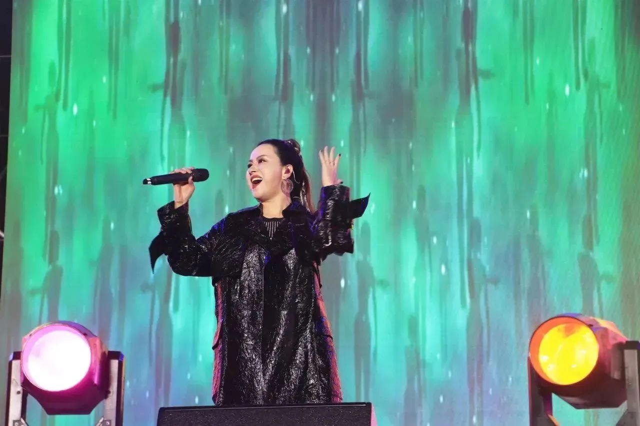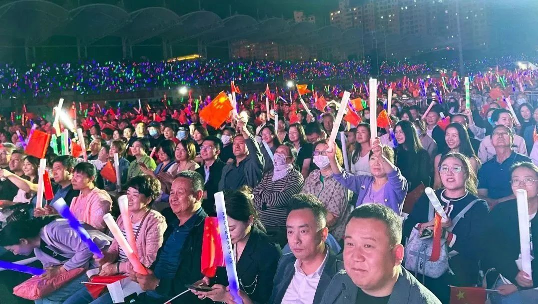 現(xiàn)場(chǎng)氛圍隨著音樂(lè)的節(jié)奏越來(lái)越熱烈,觀眾們揮舞著手中的熒光棒,大聲跟唱著經(jīng)典歌曲。