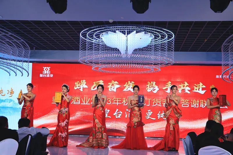 斟滿瓊漿,誠(chéng)邀各界精英齊聚首;歡聚一堂,答謝訂貨客戶心歡暢。上午11時(shí),皇臺(tái)酒業(yè)秋季訂貨客戶答謝會(huì)在開(kāi)場(chǎng)舞《絢麗華章》中盛大開(kāi)幕。