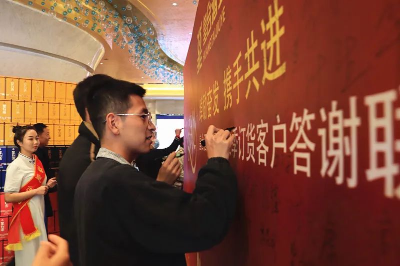 公司副總經(jīng)理、營(yíng)銷總監(jiān)張金道致祝酒詞:我們將竭盡全力為大家提供最優(yōu)質(zhì)的服務(wù),和最廣闊的發(fā)展平臺(tái)。讓我們攜手共進(jìn),再接再厲,讓我們舉起醇香的皇臺(tái)美酒,為廠商合作雙贏干杯!為皇臺(tái)品牌騰飛干杯!為百年皇臺(tái)夢(mèng)想干杯!