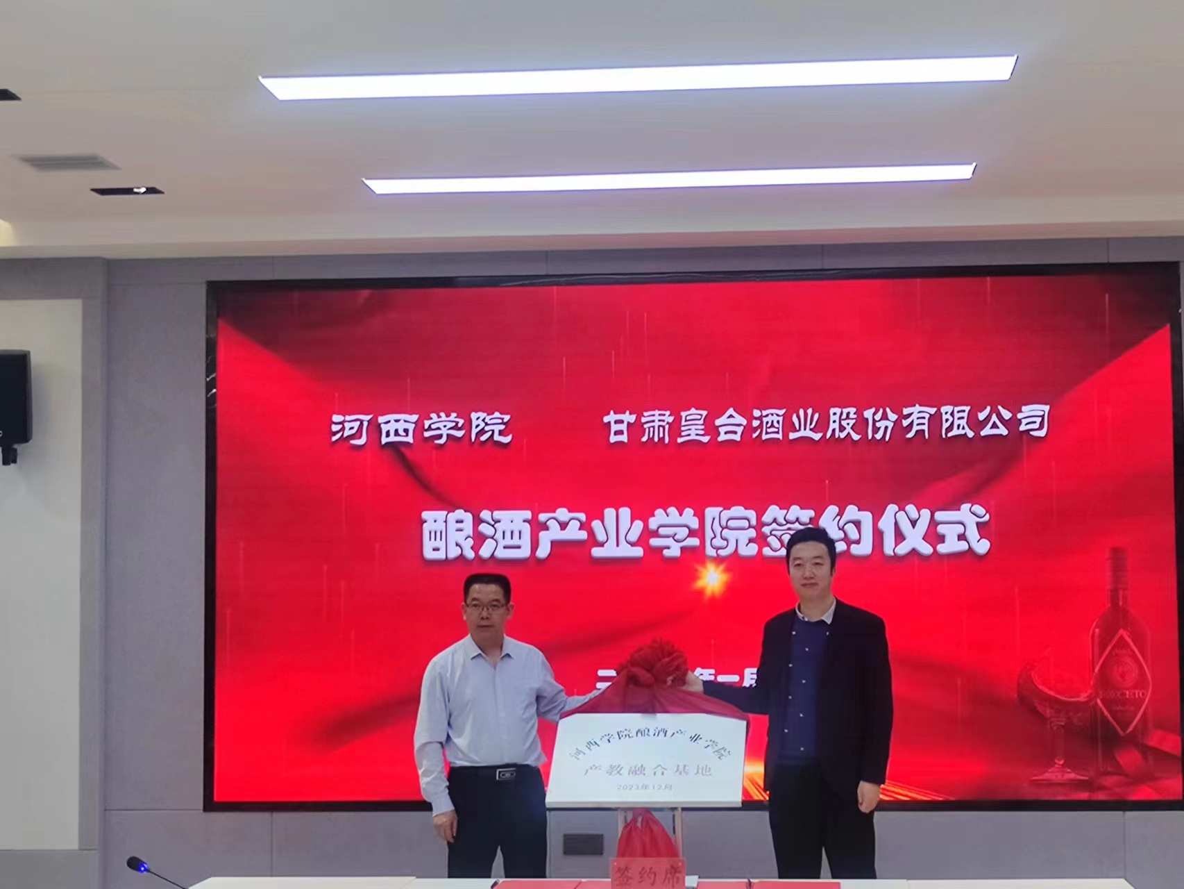 1月5日,河西學(xué)院與皇臺酒業(yè)等省內(nèi)其他幾家酒企共同舉行了河西學(xué)院釀酒產(chǎn)業(yè)學(xué)院簽約及揭牌儀式。河西學(xué)院黨委副書記、校長周勇代表學(xué)校與皇臺酒業(yè)等酒企簽訂了合作協(xié)議并揭牌。