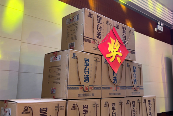 為獲獎(jiǎng)參賽選手頒發(fā)獎(jiǎng)品“皇臺(tái)酒”