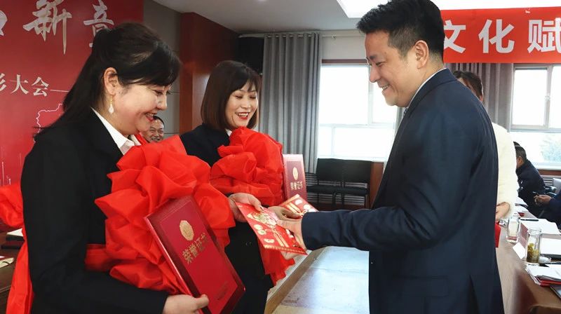 副總經(jīng)理、總工程師陳兵,營(yíng)銷(xiāo)總監(jiān)張金道為先進(jìn)個(gè)人頒獎(jiǎng)