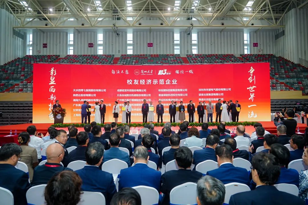 在隨后的大會(huì)現(xiàn)場頒獎(jiǎng)及授牌儀式中,嚴(yán)純?nèi)A向?qū)μm州大學(xué)教育事業(yè)作出顯著貢獻(xiàn)的個(gè)人及企業(yè)代表頒發(fā)了獎(jiǎng)項(xiàng)。甘肅皇臺酒業(yè)股份有限公司榮獲“校友經(jīng)濟(jì)示范企業(yè)”榮譽(yù)獎(jiǎng)牌,總經(jīng)理代繼陳代表公司上臺領(lǐng)獎(jiǎng)。