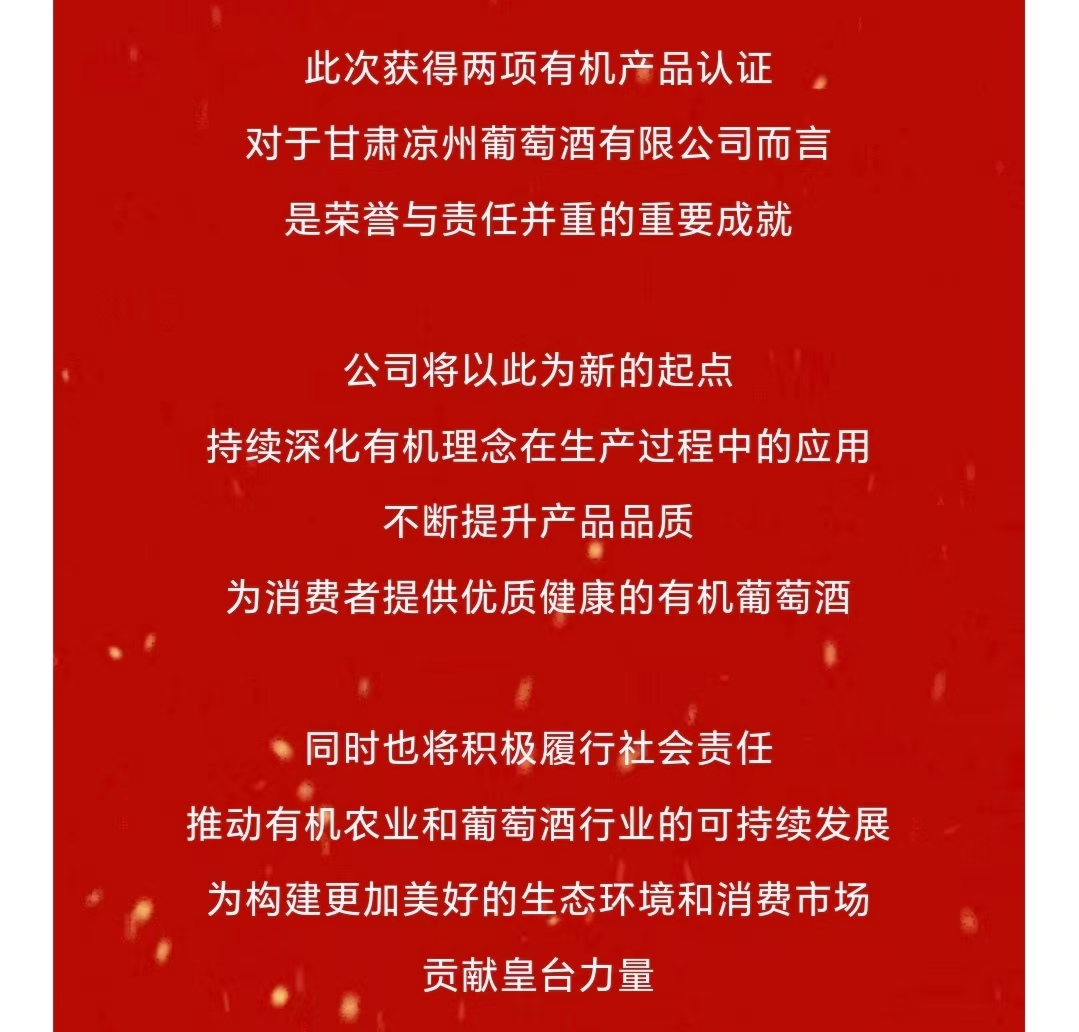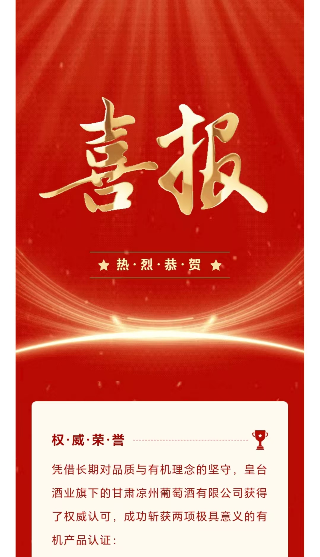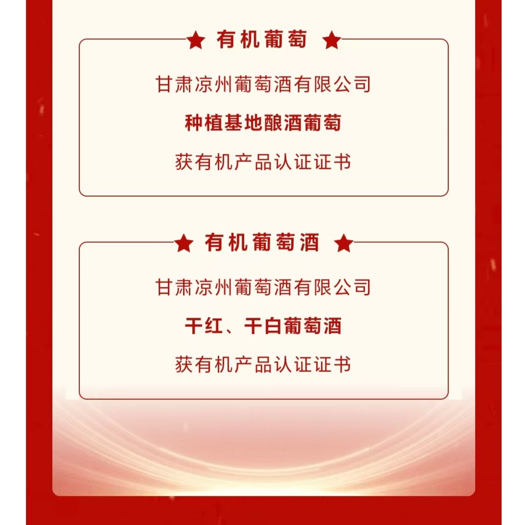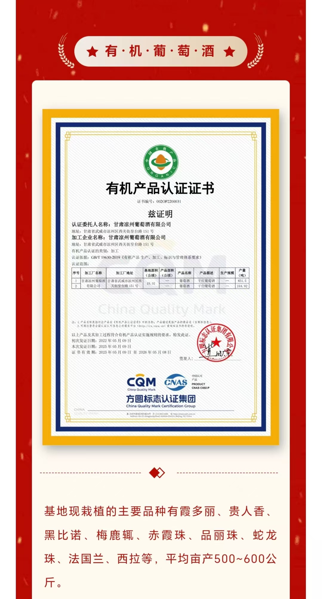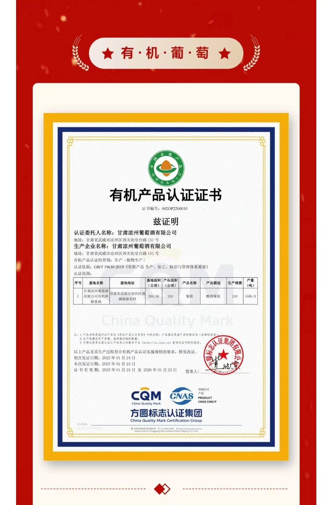 權威榮耀 | 甘肅涼州葡萄酒有限公司喜獲雙項有機產(chǎn)品認證!