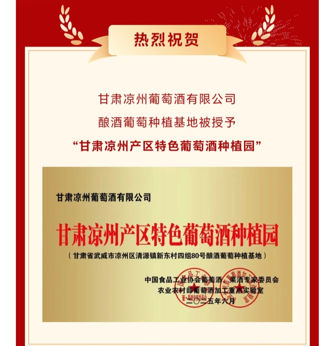 此次授牌由中國食品工業(yè)協會葡萄酒、國酒專家委員會于農業(yè)農村部葡萄酒加工重點實驗室權威認證,標志著皇臺酒業(yè)旗下的“涼州”葡萄酒在涼州產區(qū)葡萄酒產業(yè)中的標桿地位,也為甘肅葡萄酒產業(yè)高質量發(fā)展注入新動能。