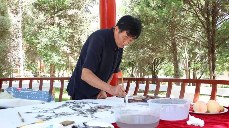 皇臺(tái)佳釀,承千年釀造之精髓,融涼州文化之底蘊(yùn),醇厚綿長,正如藝術(shù)家們筆下的線條柔美,芬芳馥郁。筆墨凝香玉,醉意蘸瓊漿。創(chuàng)作現(xiàn)場,大家執(zhí)筆蘸墨,心隨酒意,在宣紙上揮灑自如:蘭草氣韻靈動(dòng),牡丹雍容華貴,青竹氣節(jié)挺拔,駿馬馳騁奔騰,剪紙喜慶韻致……藝術(shù)家們各展所長,筆鋒流轉(zhuǎn)間,墨香與瓊漿交融,繪就一幅幅意境深遠(yuǎn)的佳作。
