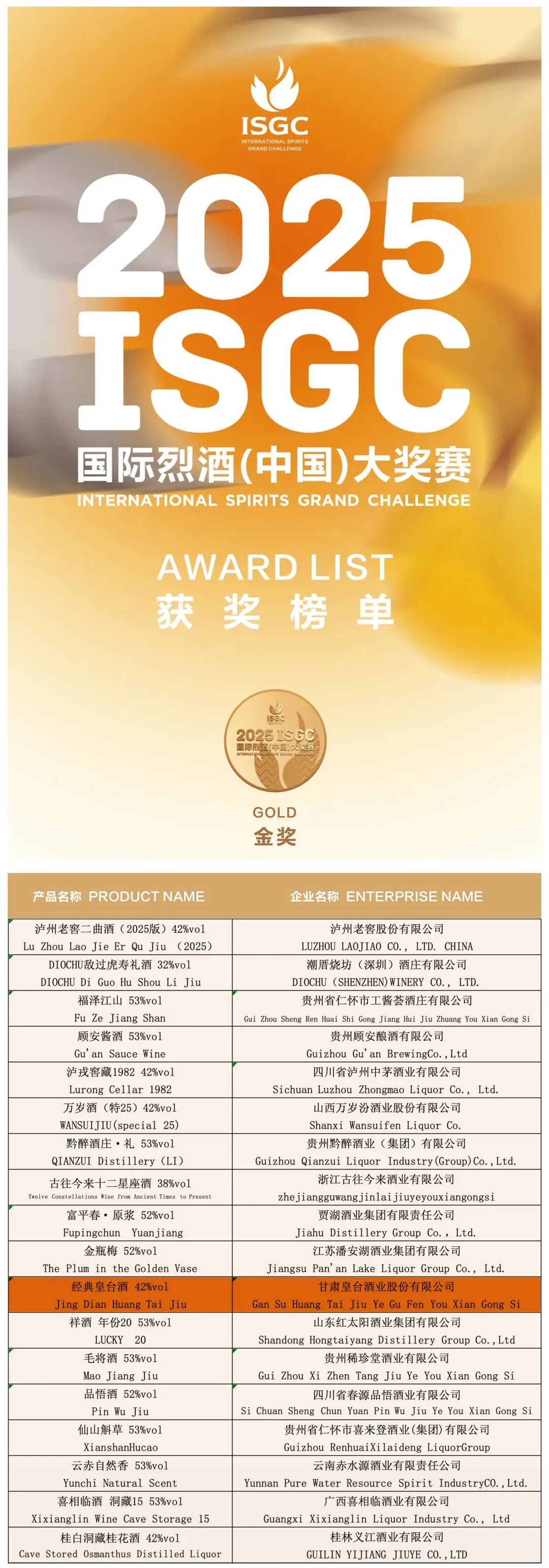 近日,備受全球烈酒行業(yè)關(guān)注的2025ISGC國際烈酒(中國)大獎賽(ISGC)公布最終榜單。在此場匯聚了全球近300家企業(yè)616款酒品同場競技中,經(jīng)典皇臺在眾多參賽酒品中脫穎而出,一舉斬獲金獎,為皇臺品牌再添榮耀。