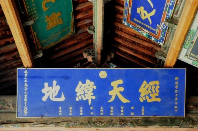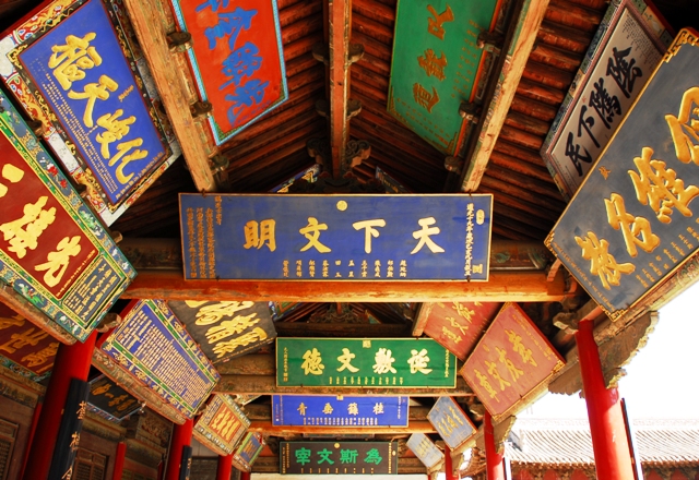 懸掛于武威文廟文昌宮桂籍殿廊檐下的幾十塊牌匾,即是如此。從康熙五十七年的“萬世文宗”,至民國二十八年的“文教開宗”,跨越了二百年不同歷史時期的四十四塊牌匾,以抵御時空侵蝕的強悍力量,在桂籍殿廊檐的梁檁間,如星辰璀璨,一塊一塊,縱橫懸掛,似光陰中綻放的文化精品之花,似二百年間不同歷史時期的文化代言。